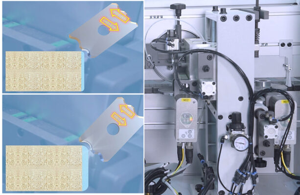 Napredne pneumatske funkcije: automatsko odsecanje krajeva kant trake i zaobljavanje uglova štede vreme i smanjuju potrebu za dodatnim ručnim radom.