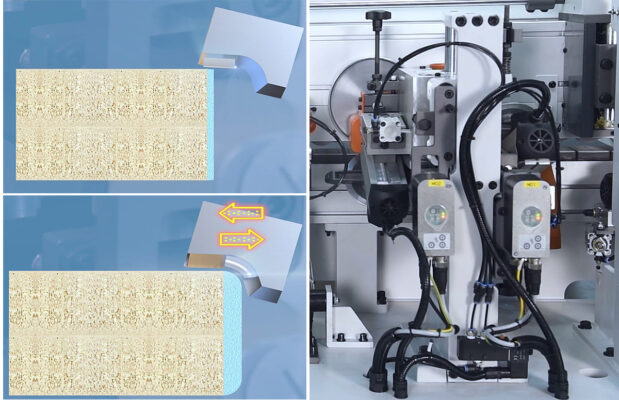 Automatsko inteligentno pozicioniranje: pritisne jedinice se automatski prilagođavaju debljini obratka, što obezbeđuje savršeno naleganje kant trake bez potrebe za ručnim podešavanjem.