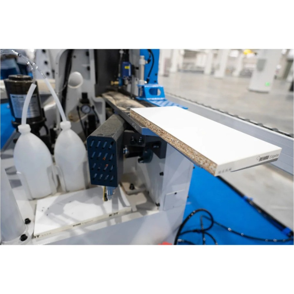 Dvostruki rondomat sa dva servomotora i pneumatskim podešavanjem omogućava obradu četiri različita profila i osigurava optički savršene uglove bez potrebe za ručnim doradama.